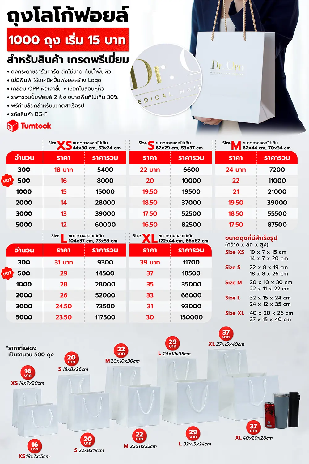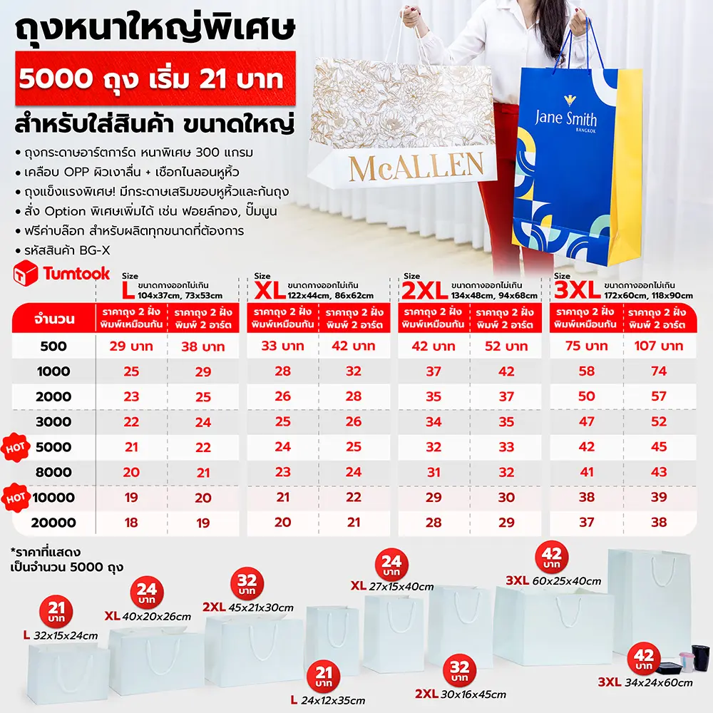 มีถุงกระดาษให้เลือกหลายขนาด ทำถูกมีถุงกระดาษให้ลูกค้าเลือกหลายไซส์ ไม่ว่าจะเป็น ถุงกระดาษขนาดเล็กสำหรับใส่อาหารเสริม จนถึงถุงกระดาษขนาดใหญ่ สำหรับใส่กล่องรองเท้า